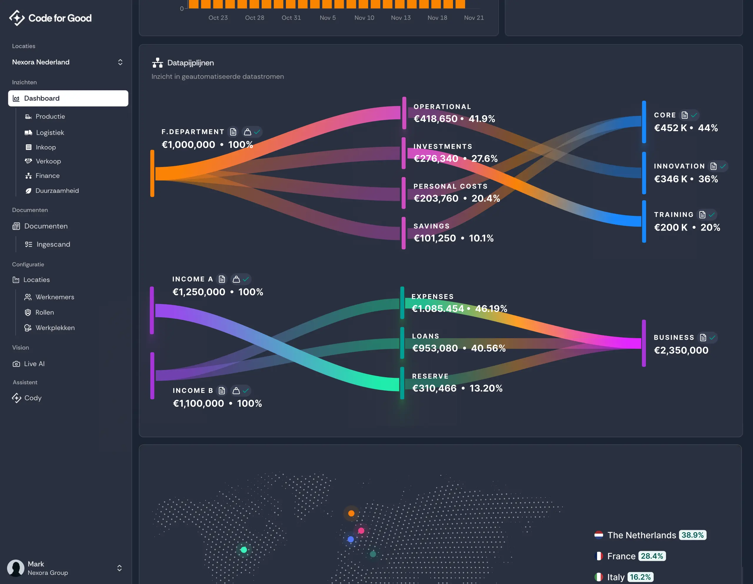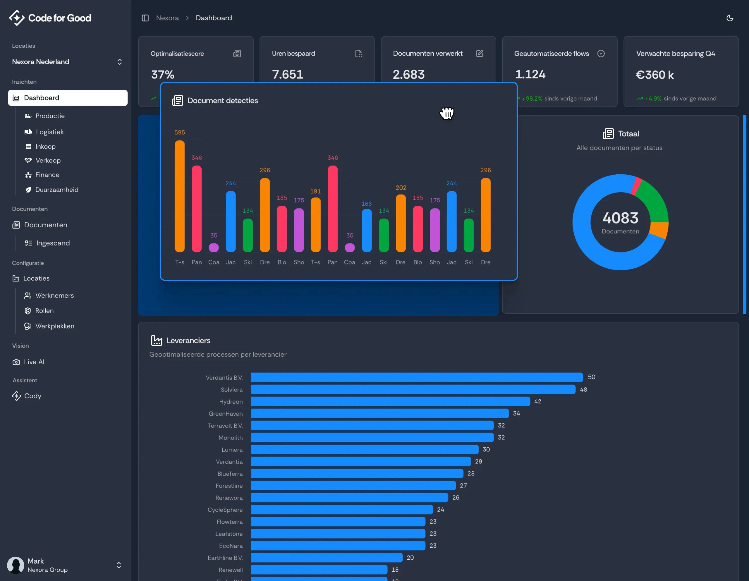 Verzamel data direct vanaf de werkvloer via de Code for Good App, automatisch gesynchroniseerd en direct omgezet in waardevolle inzichten waarmee je snel en gericht kunt bijsturen.